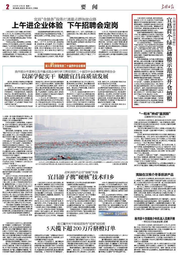 不仅追求“存得好”,更要实现“服务优”与“运行绿”。记者看到,紧邻粮库的烘干中心与加工车间主体结构已屹立一旁,内部安装工程正紧锣密鼓进行,预计2026年春季可全面投产。届时,这里将拥有宜昌市吞吐能力最大、功能最完善的集粮食烘干、绿色仓储、应急加工于一体的现代粮食产业园,日烘干产能达720吨、稻谷加工300吨。